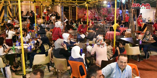 يجلس وائل أبو عساف القادم من محافظة السويداء برفقة عائلته لزيارة معرض دمشق الدولي في إحدى استراحات المعرض ويقول بسعادة لمندوبة سانا “بعد التعب من التجول بين أجنحة المعرض قررنا أخذ قسط من الراحة قبل إكمال جولتنا إلى الأجنحة الأخرى” إلى جانبه تجلس زوجته رغد الشيباني وبابتسامة خفيفة ارتسمت على وجهها تقول: “أجواء المعرض بشكل عام ساحرة لا يشعر الزوار بالتعب خلال زيارتهم لفعالياته لكن الجو الجميل في المقاهي جذبنا للاستراحة هنا قليلا”.
